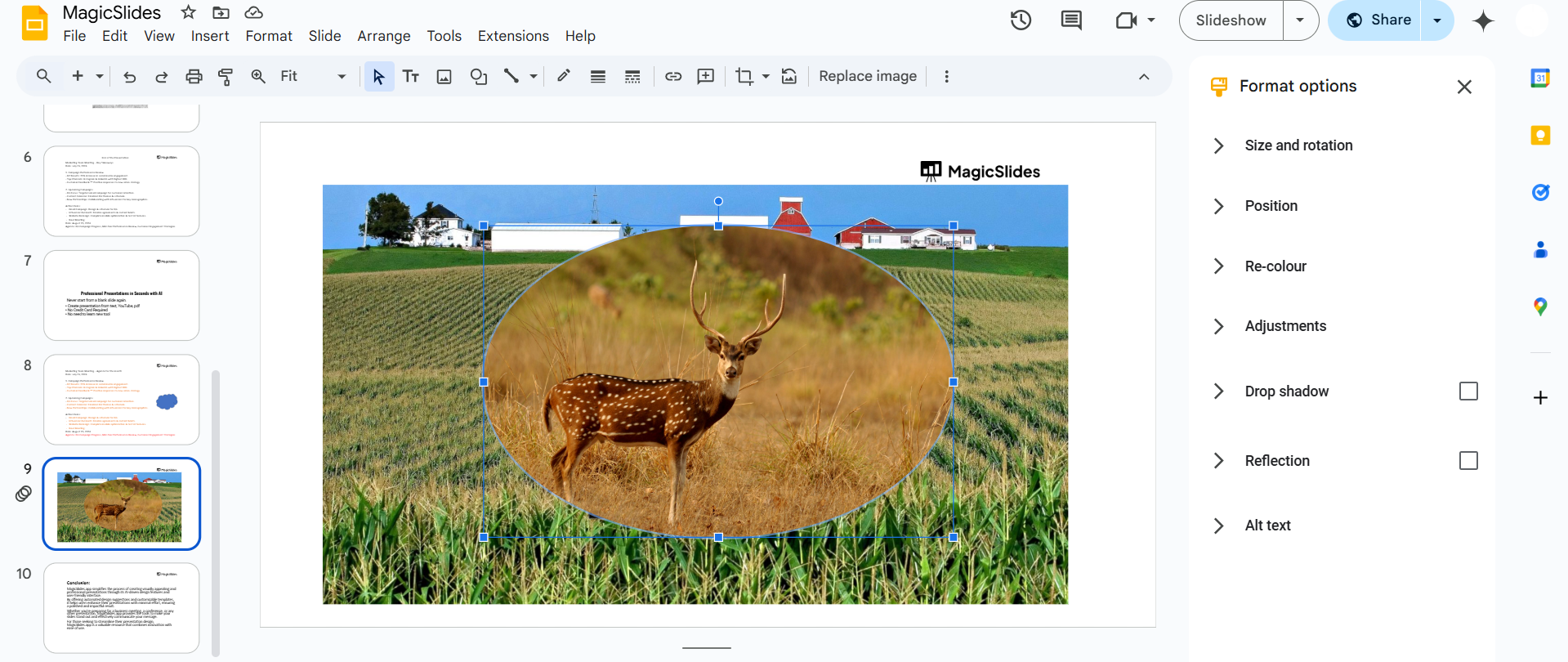 Layering pictures in Google Slides helps create visually appealing presentations, but if you want to save time and generate professional slides instantly, try MagicSlides.app. Just enter your topic, and let AI do the work!