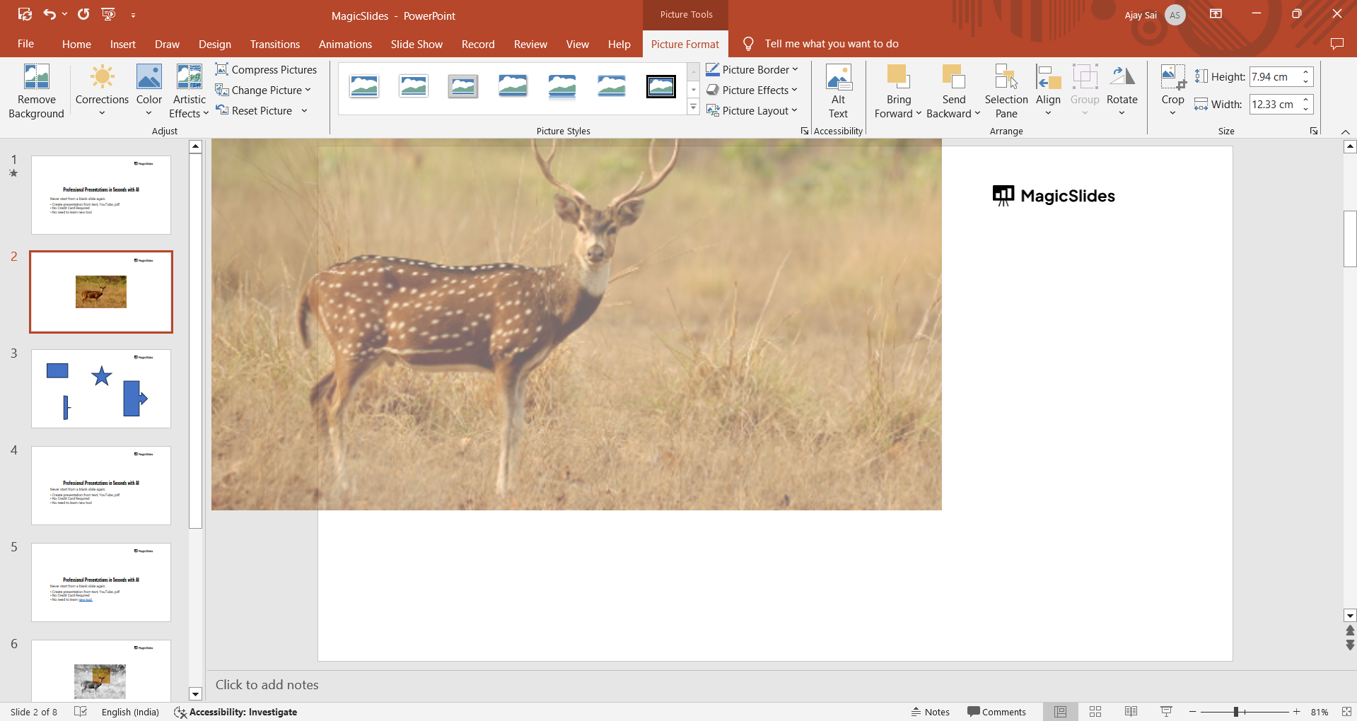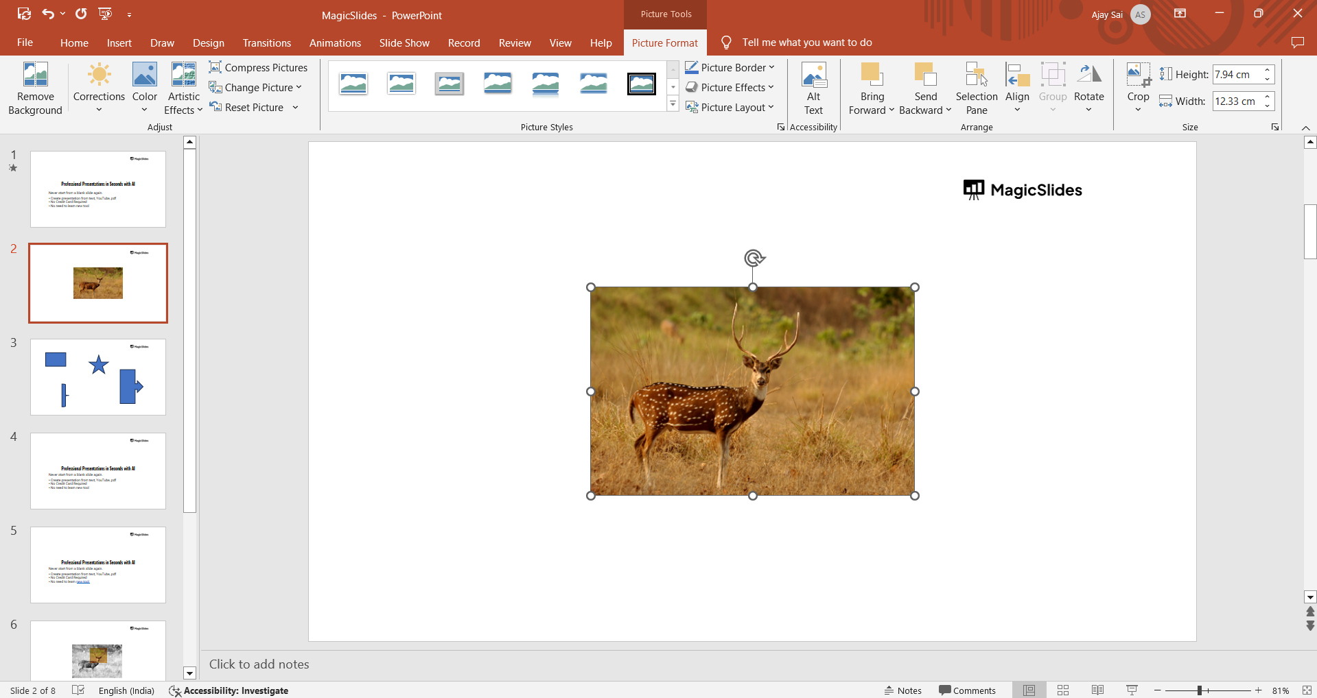 You can also add effects, borders, or shadows from the "Format" tab to enhance the picture further.