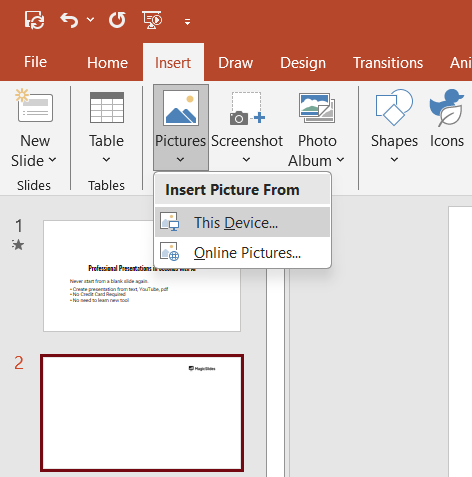 Click on "Pictures" and select the location of your image (e.g., "This Device," "Stock Images," or "Online Pictures").