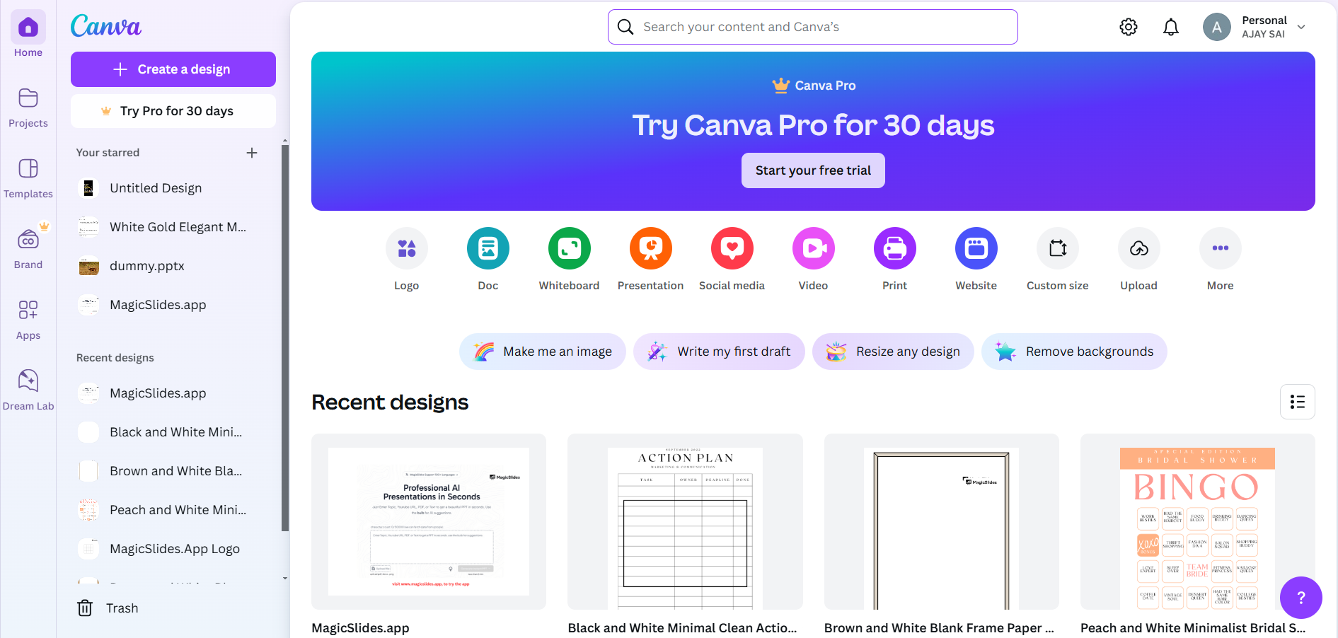 Now, you’re ready to use Canva’s presentation settings to create an engaging and professional slideshow!