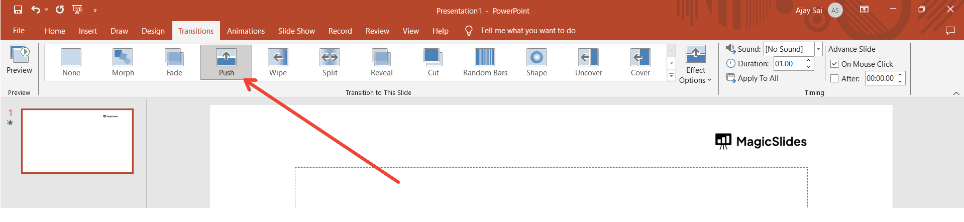 Elevate the visual dynamics of your PowerPoint presentation by incorporating engaging transitions. Adding a push transition not only introduces a seamless flow between slides but also captivates your audience's attention. Here's a simple guide to help you integrate a push transition and enhance the overall impact of your presentation.