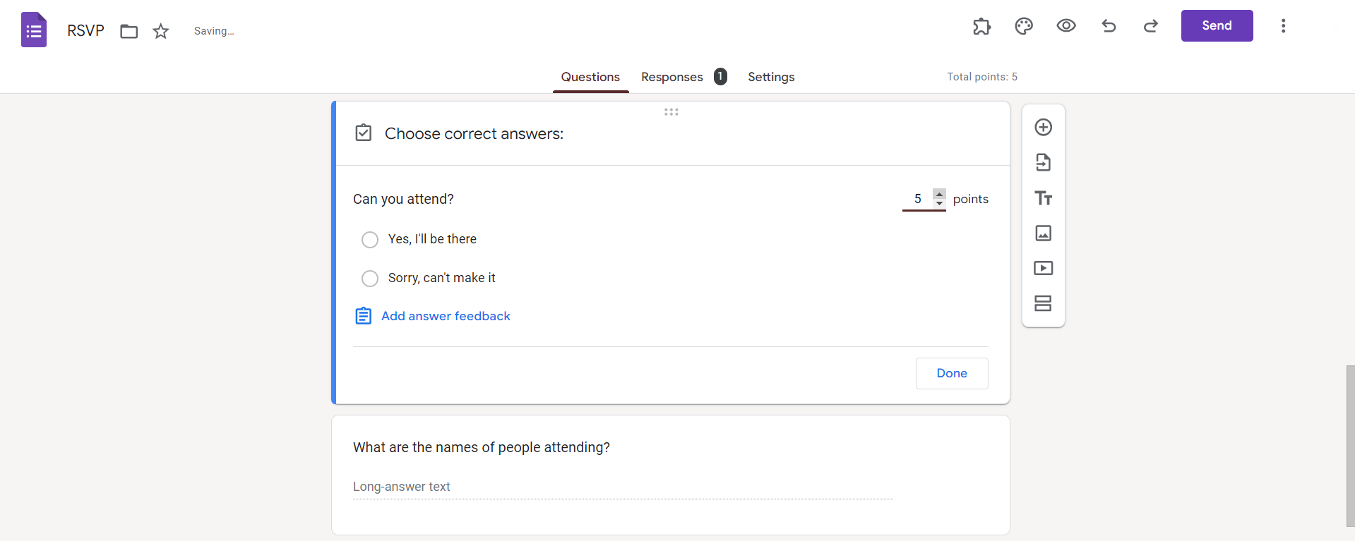 How to add answer key to Google forms