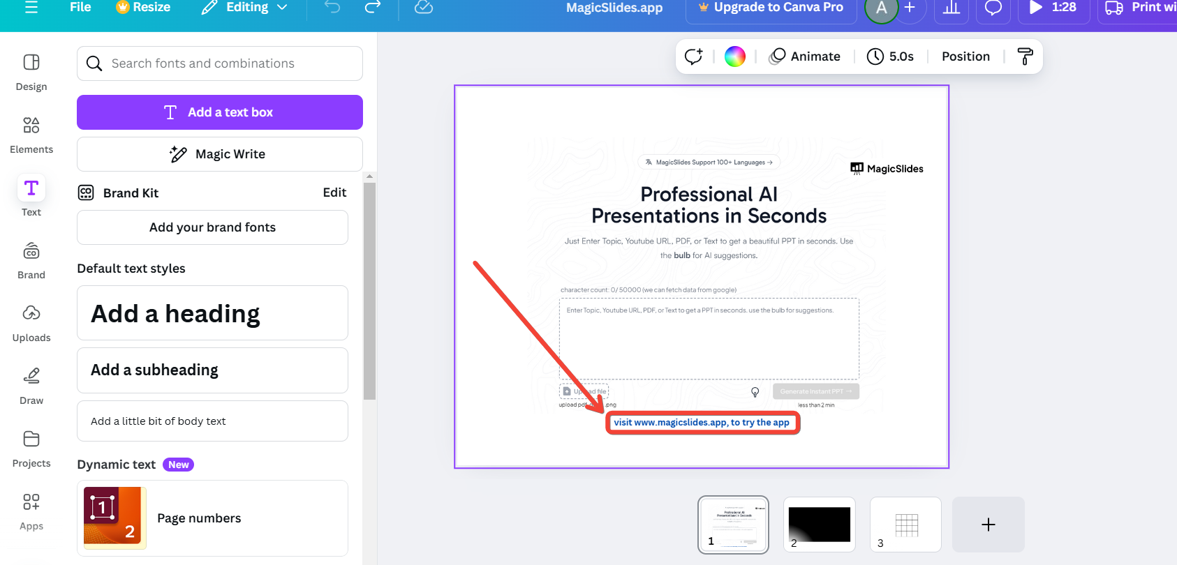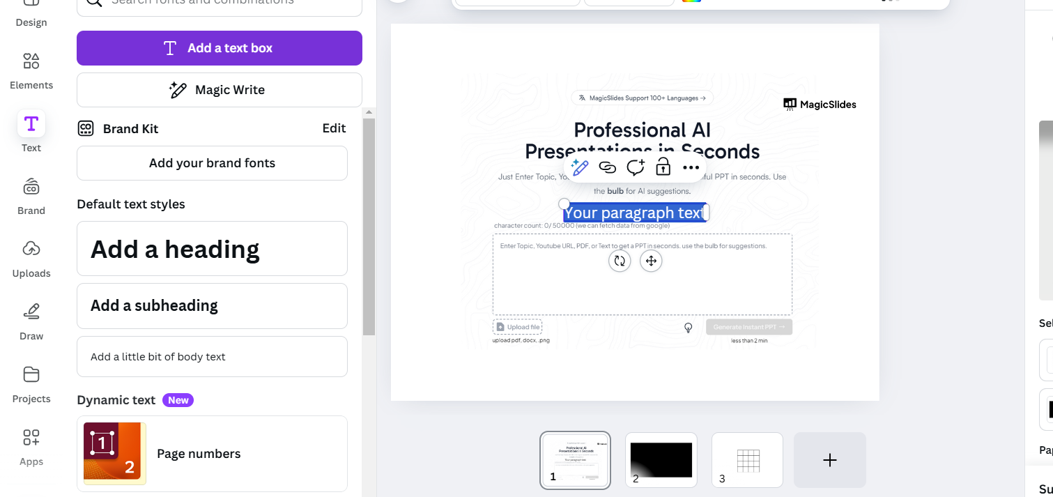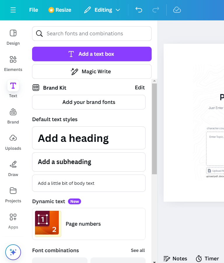 Select Add a text box or choose one of Canva’s preformatted text options for stylish captions.