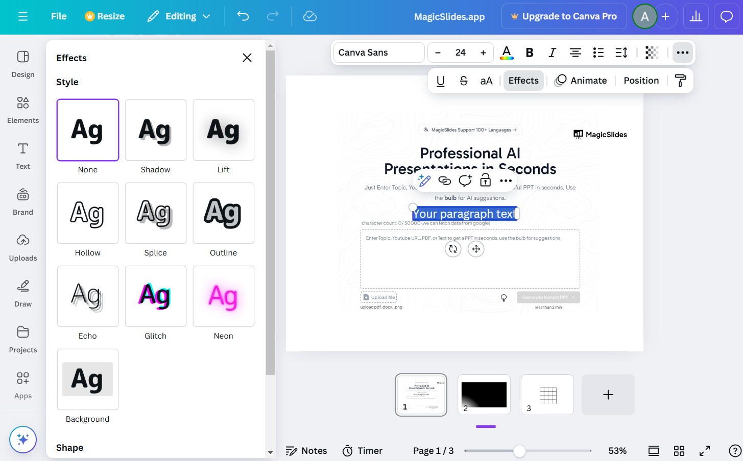 Choose effects like Shadow, Outline, or Lift to make your caption pop.