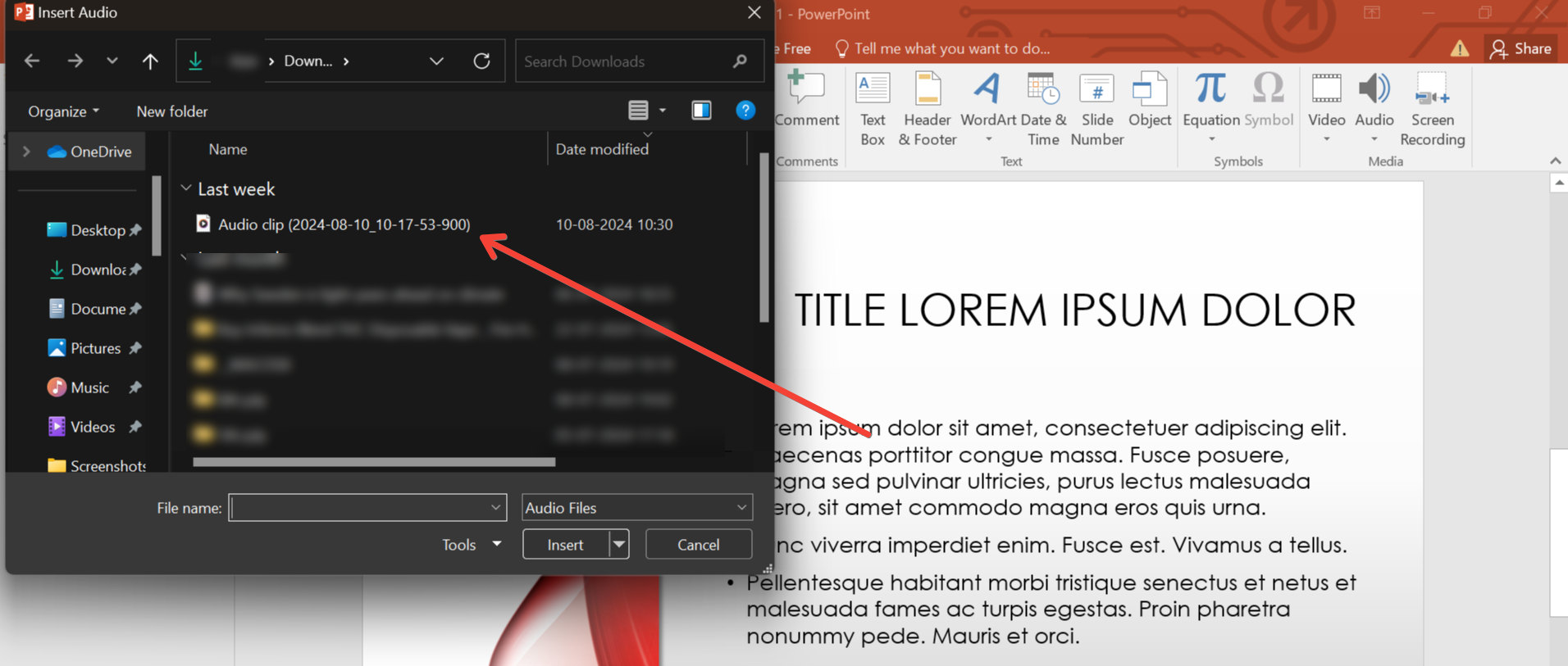 - Your audio file should be in a PowerPoint-supported format: MP3, WAV, M4A (newer versions), and WMA (Windows).