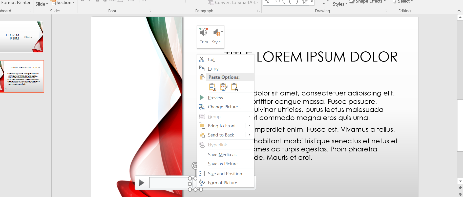Sometimes, adding music makes the PowerPoint file too big. To reduce size: