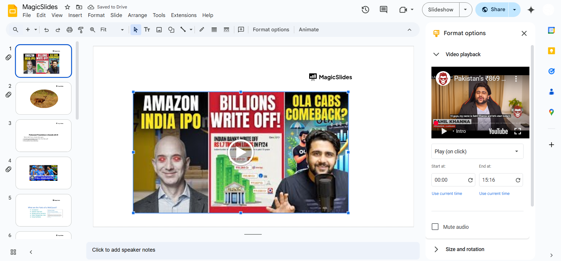 How do I make my video play automatically in Google Slides?