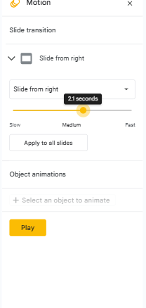 After selecting the transition type, you can adjust the transition speed to your preference, such as "Fast," "Medium," or "Slow."