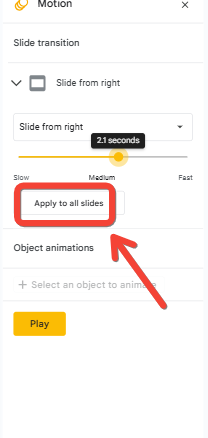 If you want to use the same transition for every slide in your presentation, select the "Apply to all slides" option.