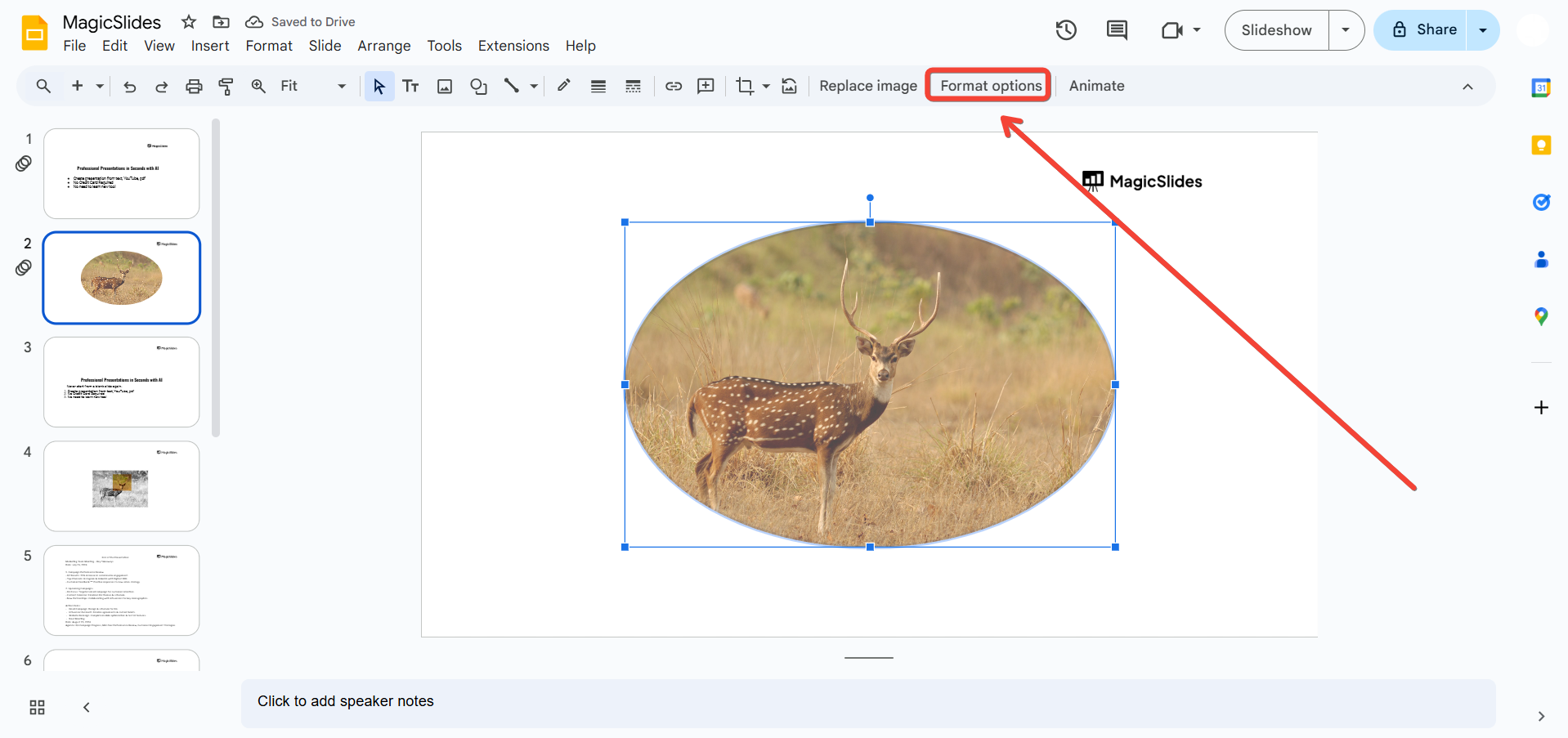 With the object selected, right-click and choose “Format options” from the dropdown menu.