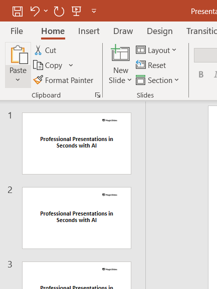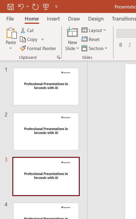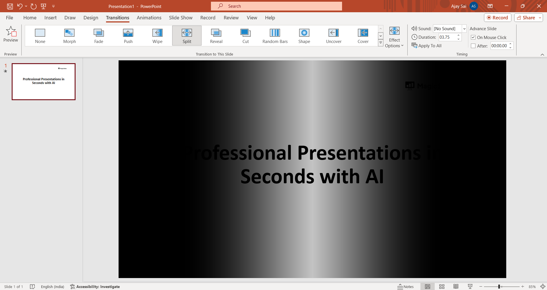 If you want the split transition effect on multiple slides, repeat the process for each slide.
