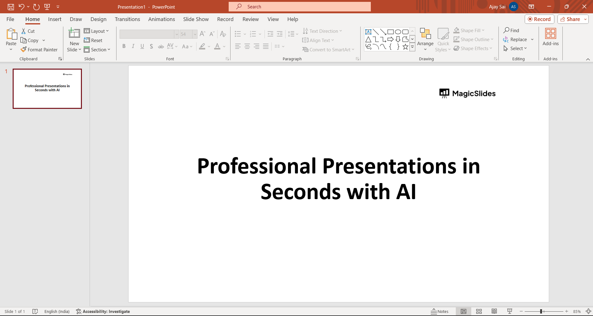 Launch PowerPoint and open the presentation where you want to apply the split transition.