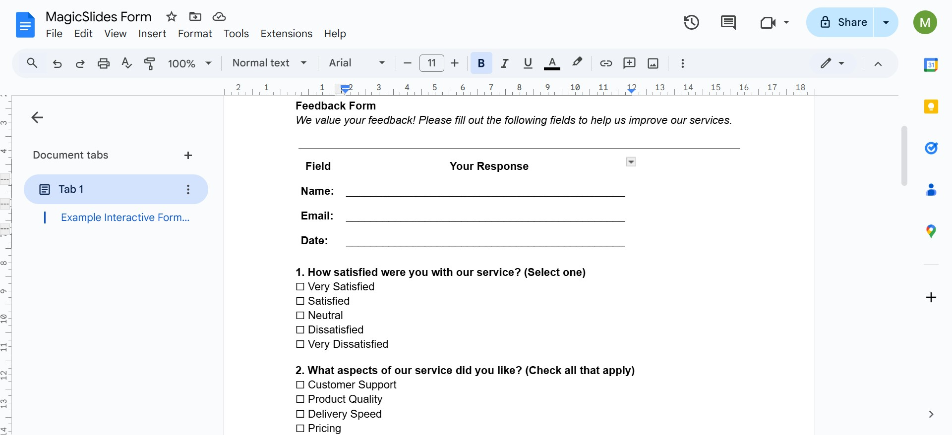 Interactive forms are an excellent way to collect data, gather feedback, or manage surveys, and you can build them directly in Google Docs!