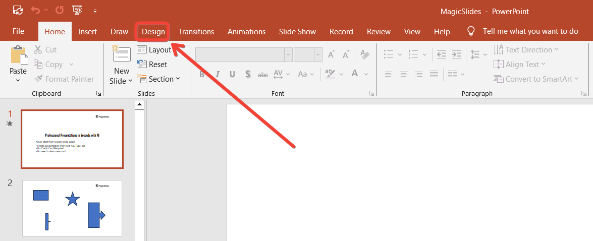 Step 3: Open the “Design” Tab