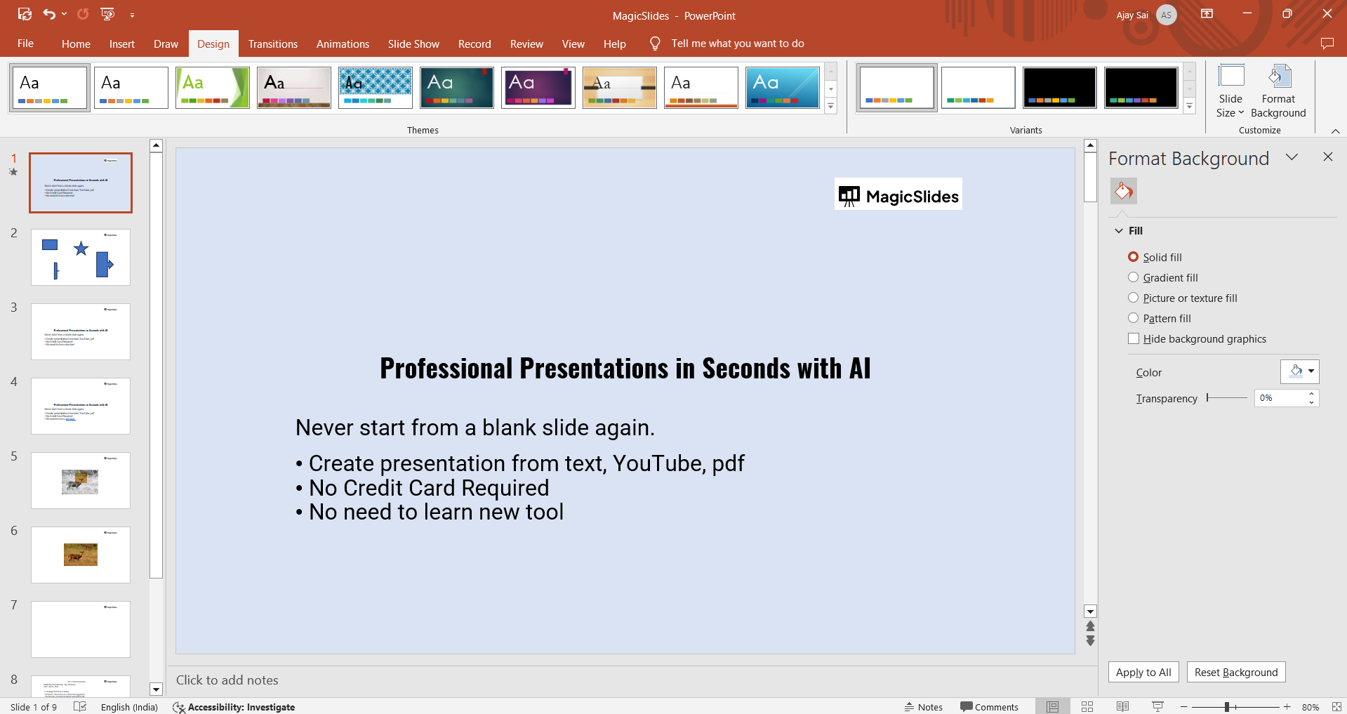 Step 6: Apply the Color to One or All Slides