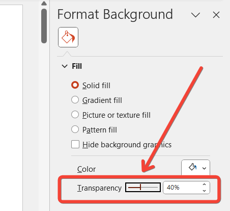 These options are available in the "Format Background" panel, allowing you to tweak how visible or subtle the background graphic appears.