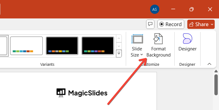 On the right-hand side of the "Design" tab, you’ll find the “Format Background” option.