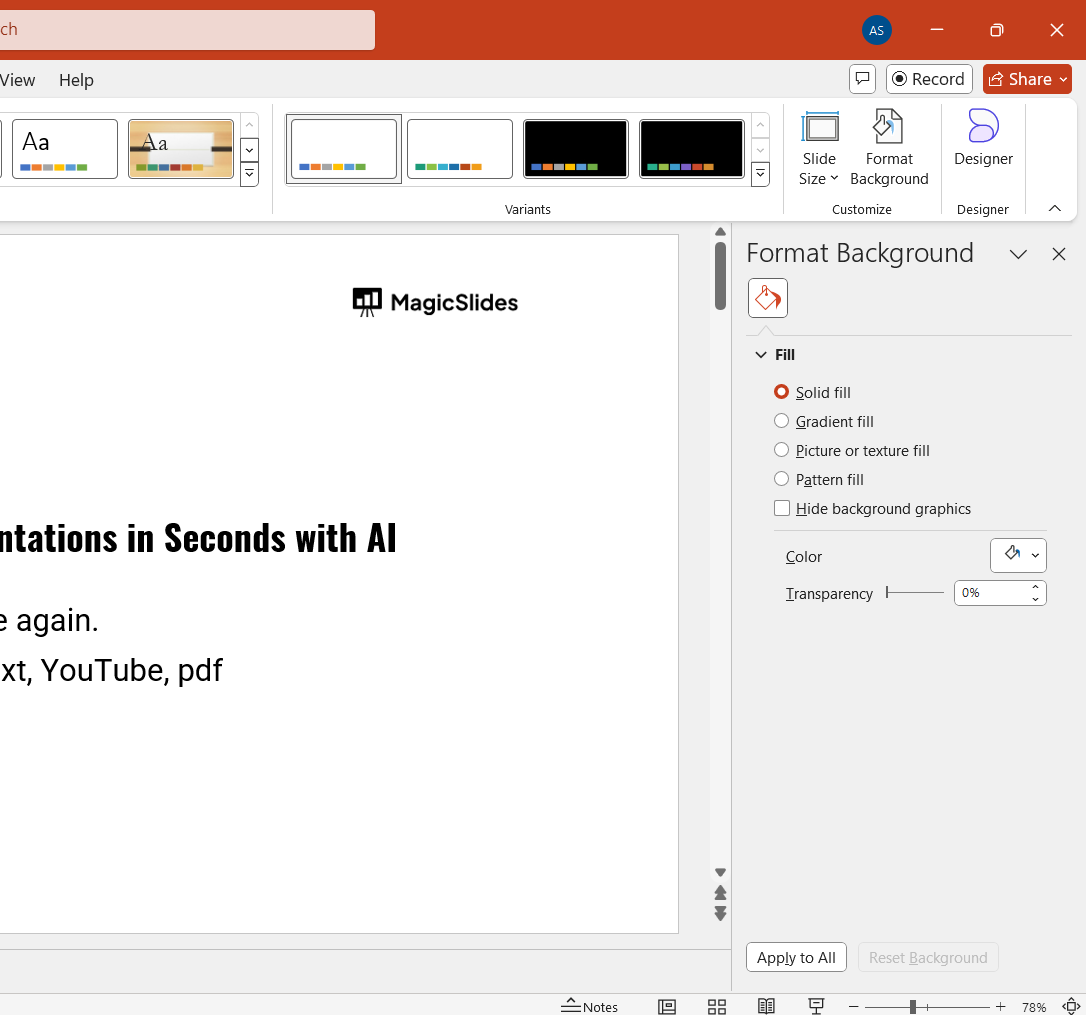 By following these steps, you can easily customize the background to suit your content, whether you're using a solid color, gradient, or image.