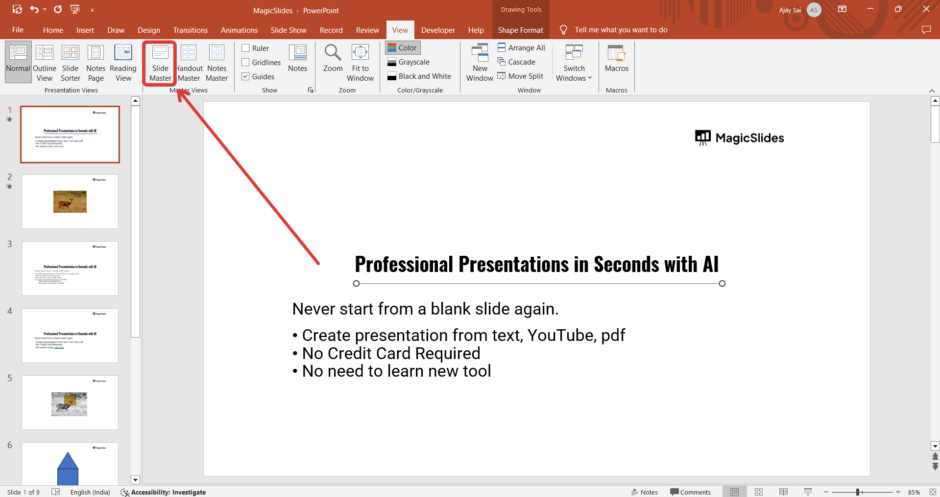 Step 2: Select the Slide Master View
