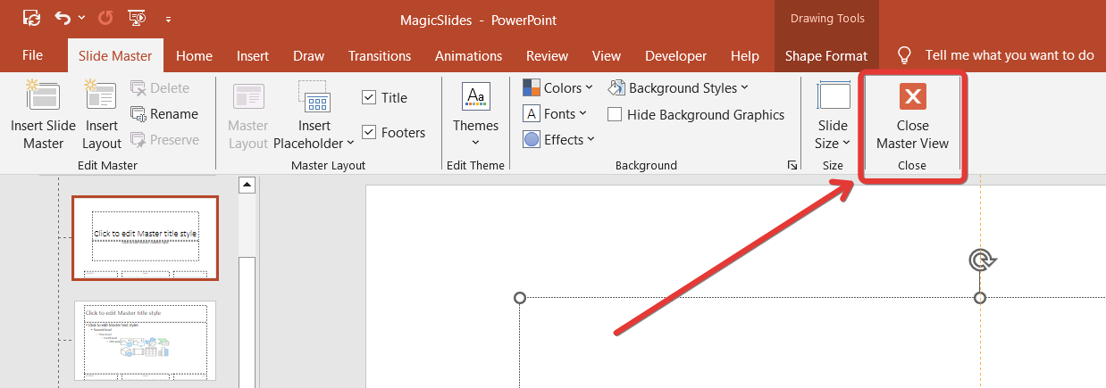 After modifying the fonts, click Close Master View under the Slide Master tab.