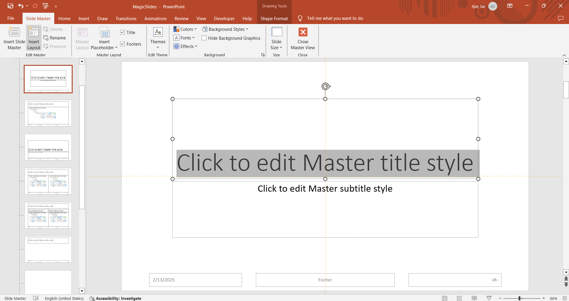 If you only want to modify specific slide layouts, select the corresponding layout below the Master Slide.