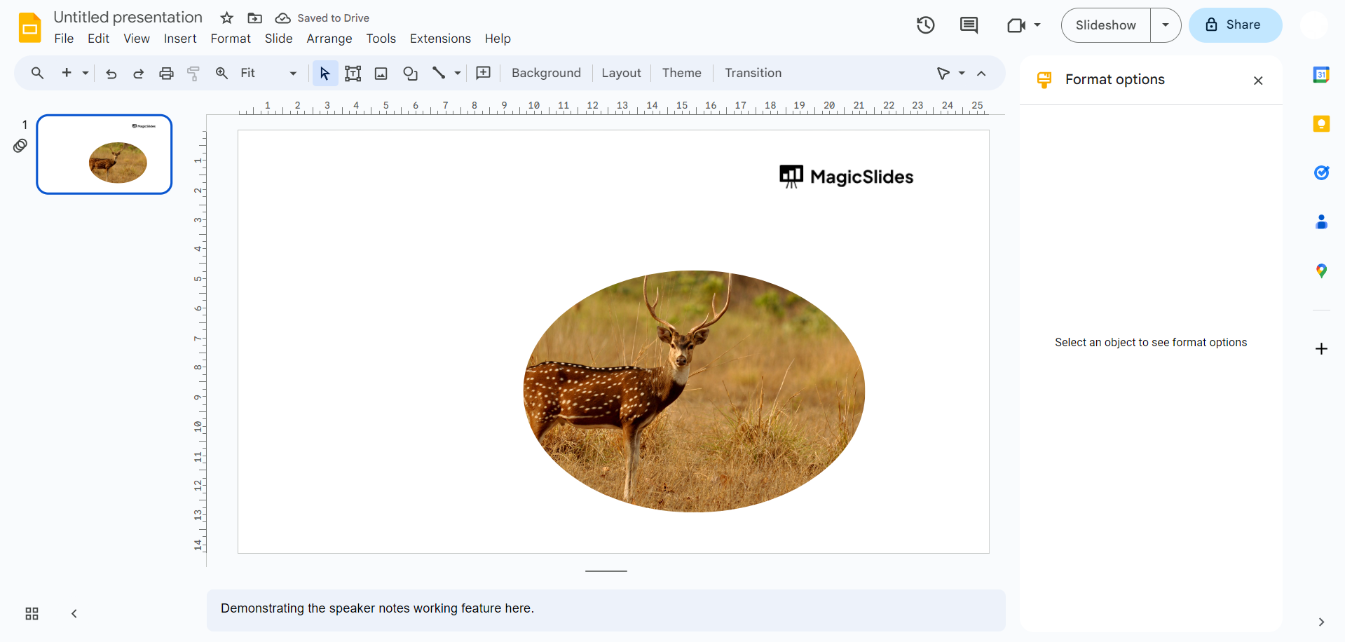 Start by opening the Google Slides presentation where you want to change the shape of an image. If you don't have one, create a new presentation in Google Drive.