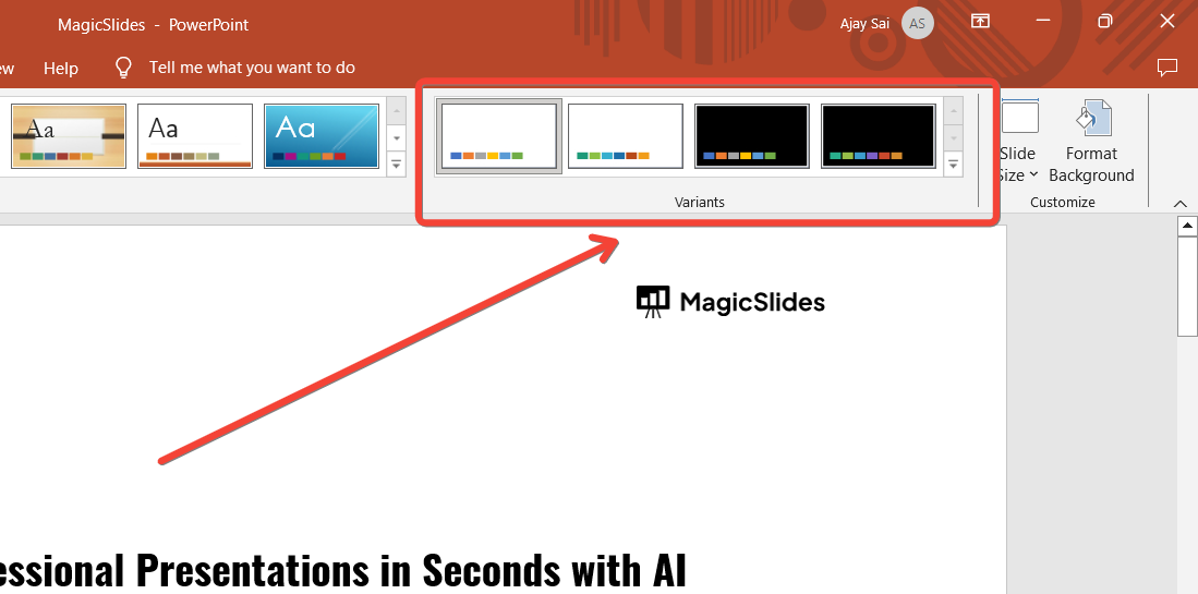 In the "Design" tab, locate the "Variants" group on the right-hand side.