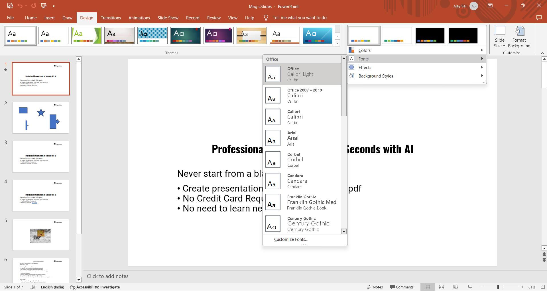 Whether you're creating a business presentation or a creative pitch, altering the theme font helps enhance the overall design and professionalism.