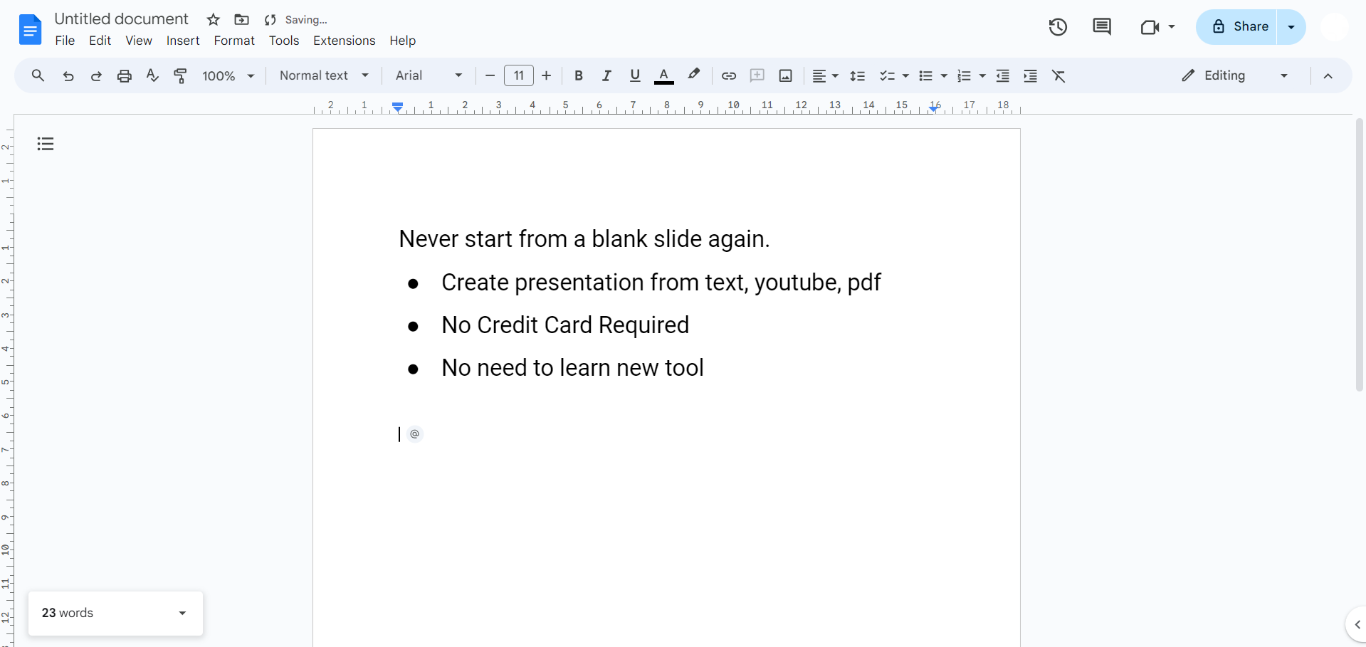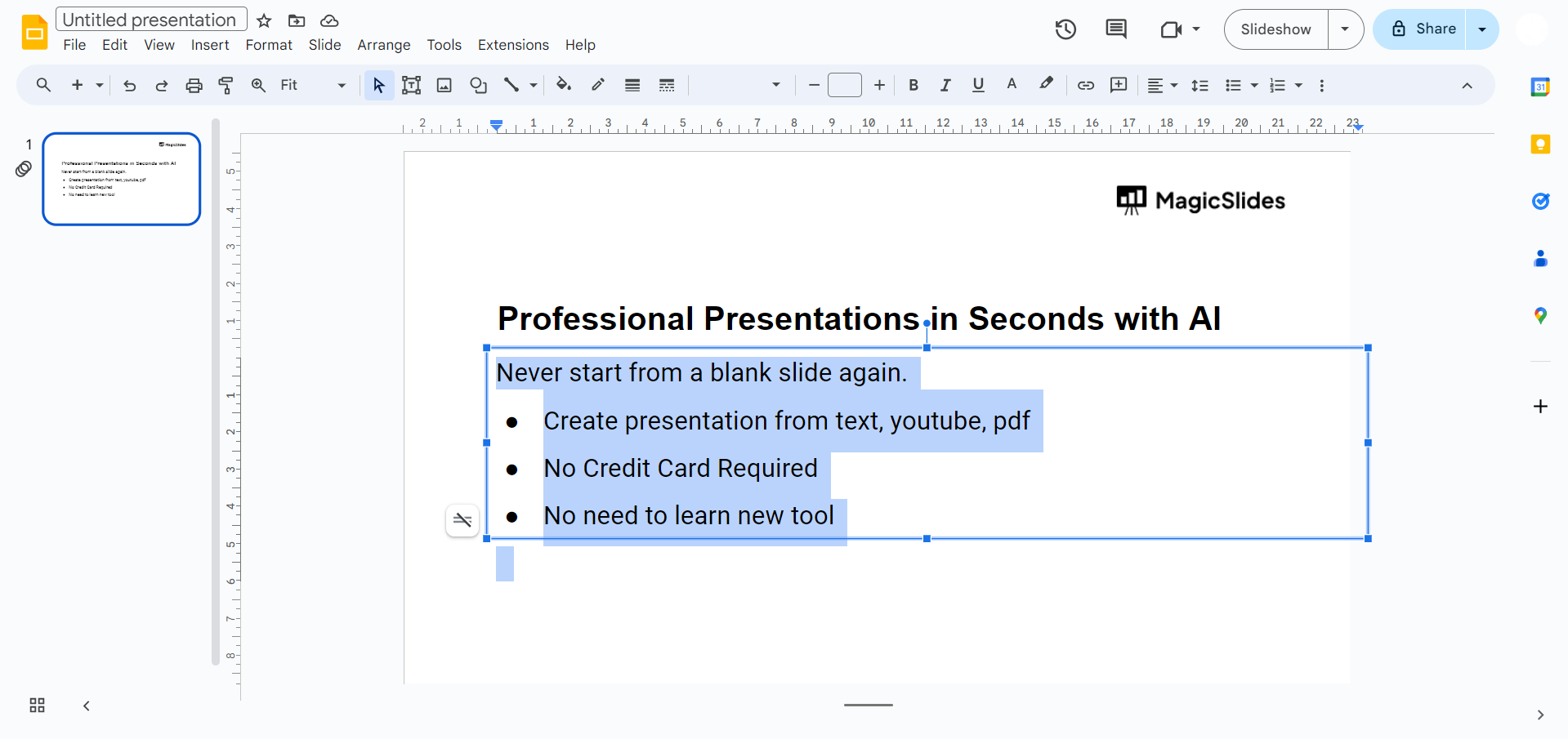 If your content spans multiple slides, repeat these steps for each slide's text. You can continue pasting the text into the same Google Docs document, and the word count will accumulate.