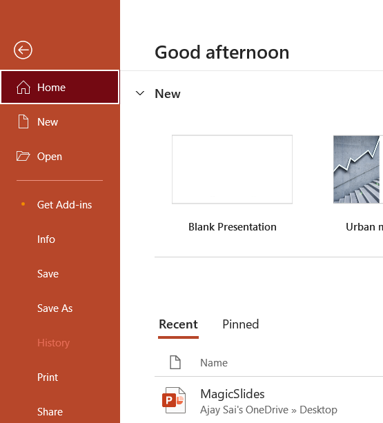In the top left corner of your PowerPoint window, click the “File” tab.