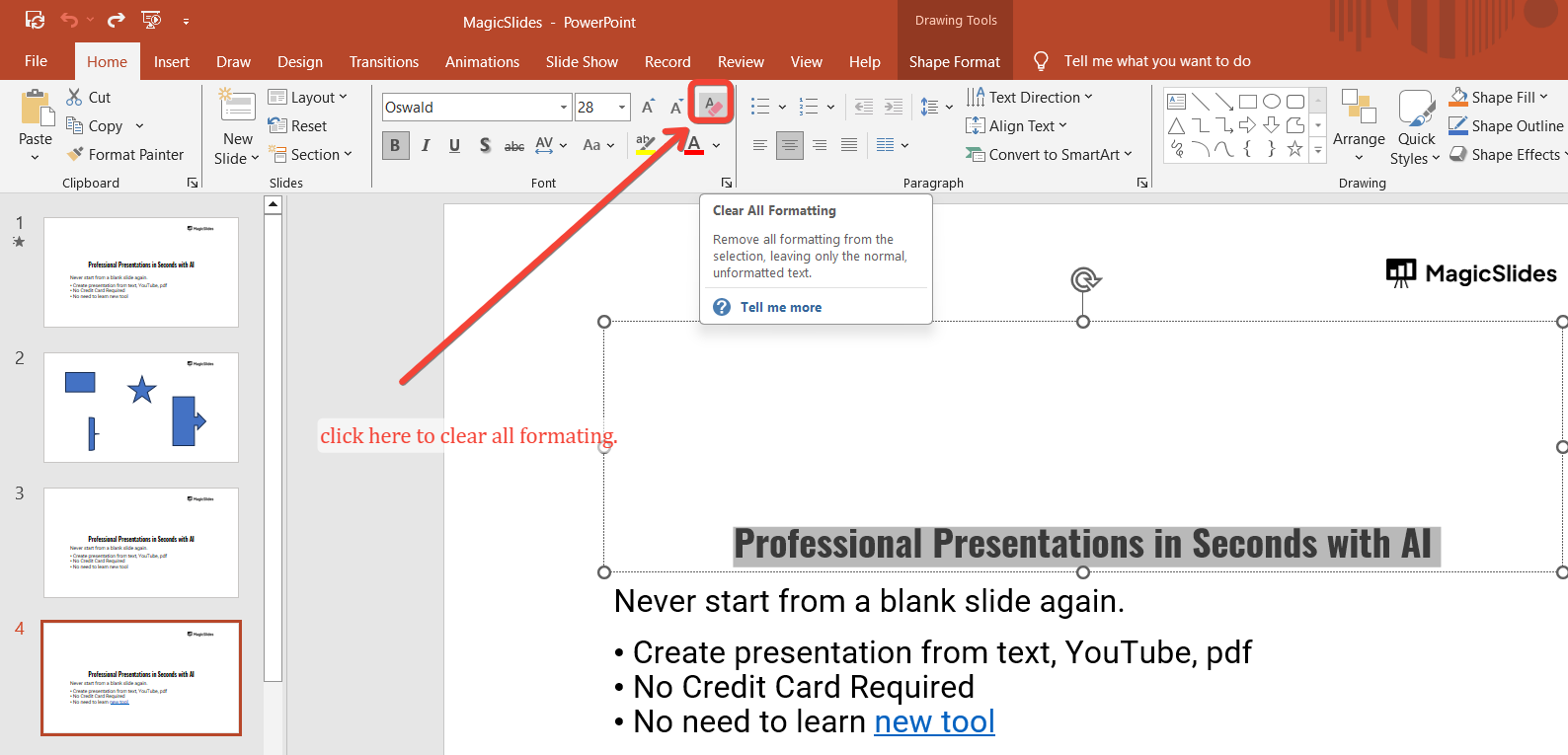 If there are other sections in your PowerPoint where formatting needs to be cleared, simply repeat the same steps.