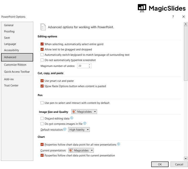 - If you've cropped images in your presentation and want to retain the cropped areas, unselect the "Delete cropped areas of pictures" checkbox.