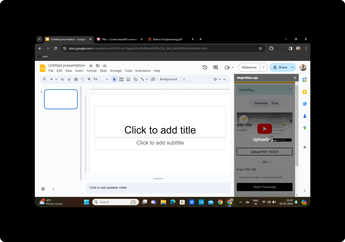Navigate to the extensions menu and click on MagicSlides GPT. This innovative tool will be your key to transforming classic novels into captivating PowerPoint presentations.