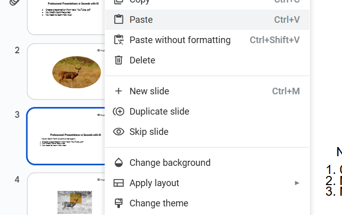 Alternatively, use the keyboard shortcut Ctrl + V (Windows) or Cmd + V (Mac) to paste the slide.