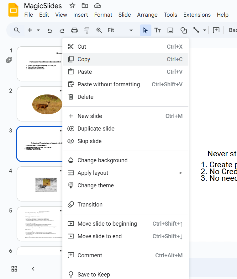 Whether you're duplicating slides for consistency or transferring them between presentations, this straightforward process helps streamline your workflow.