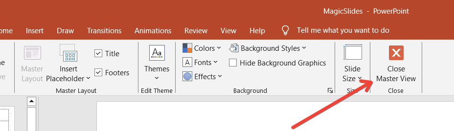 Once you’ve added and customized the placeholder, exit the Slide Master view by clicking on the "Close Master View" button in the Slide Master tab.