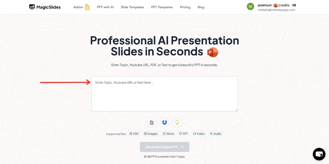 - Click "Generate Instant PPT."