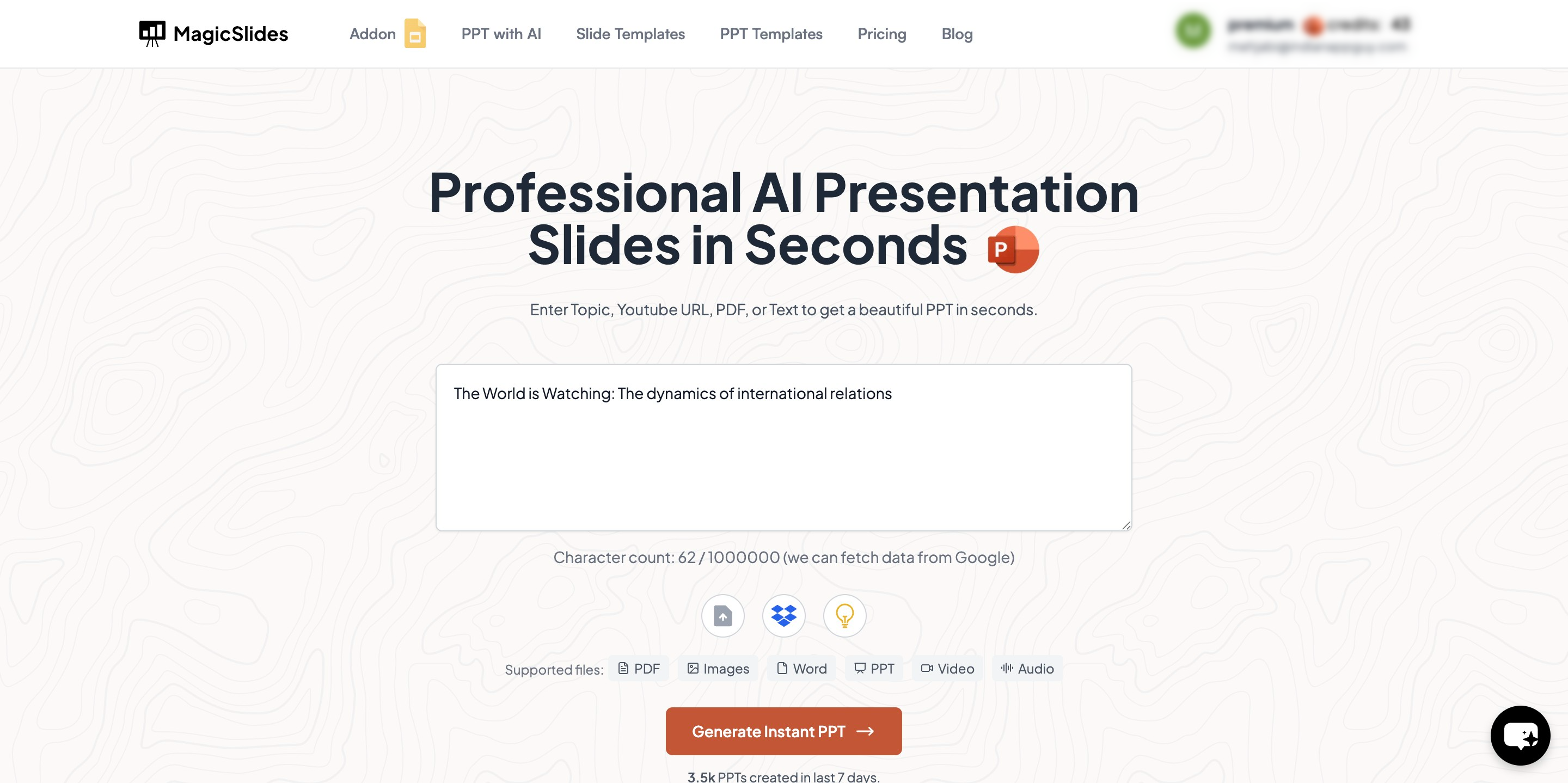 - Click on "Generate Instant PPT" to create an AI-powered presentation.