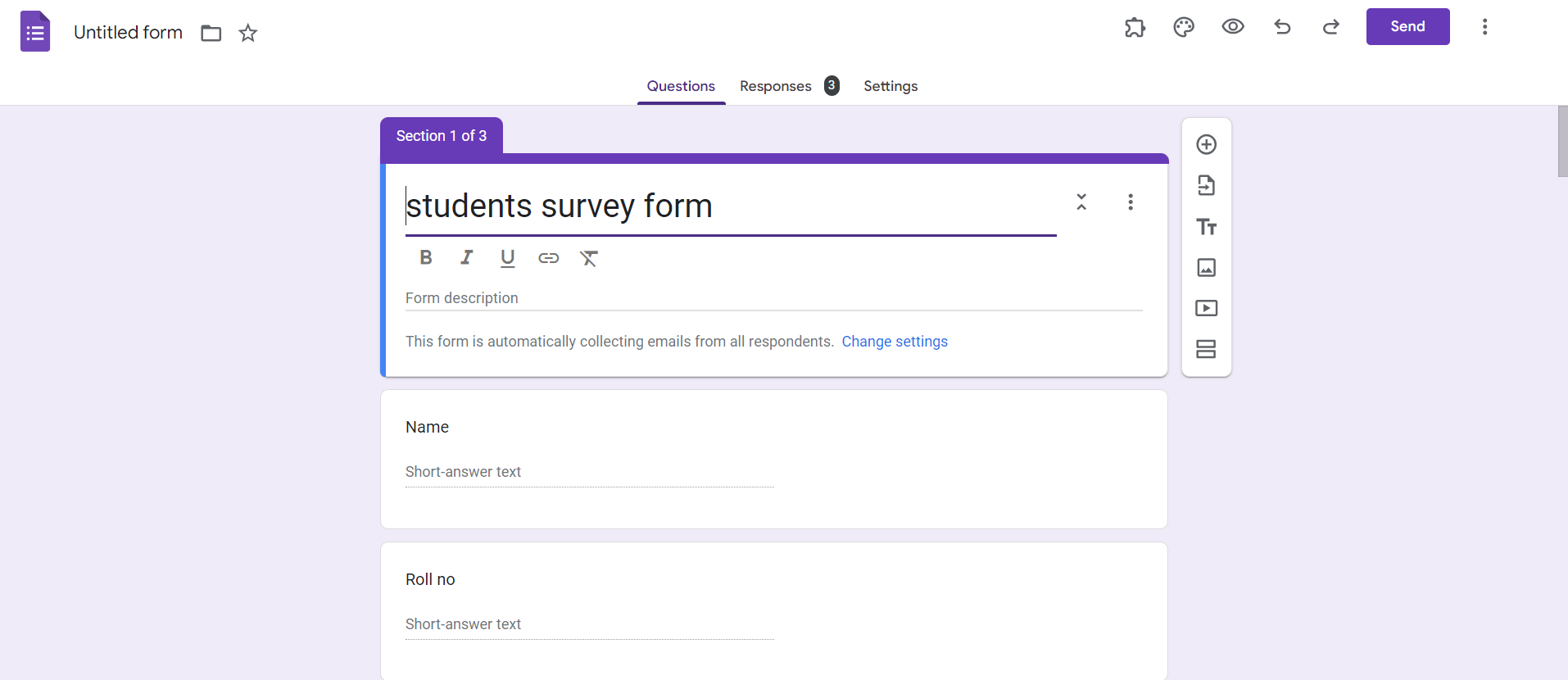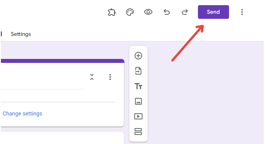 Once your form is ready, click on the "Send" button located in the top-right corner of the Google Forms editor.
