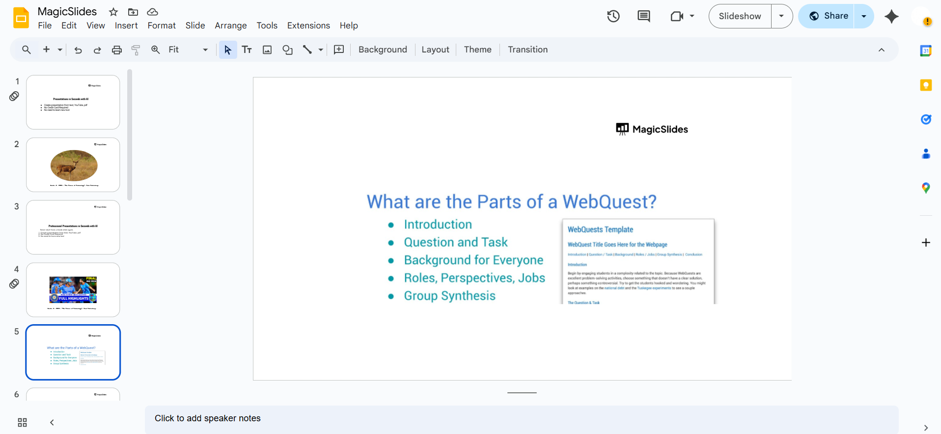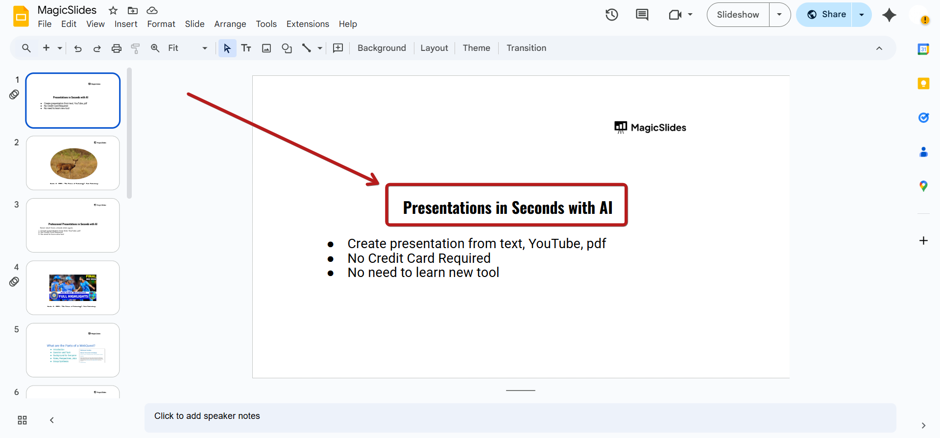 Sections help organize your slides better, but if you want to skip structuring manually, try MagicSlides.app AI-built slide decks that are automatically organized and presentation-ready in seconds!