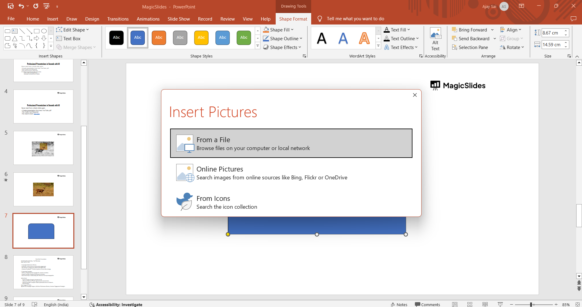 Click on it, select "Picture," and then choose "From a File" (or another source where your image is stored). This action will fill the shape with the image you selected.