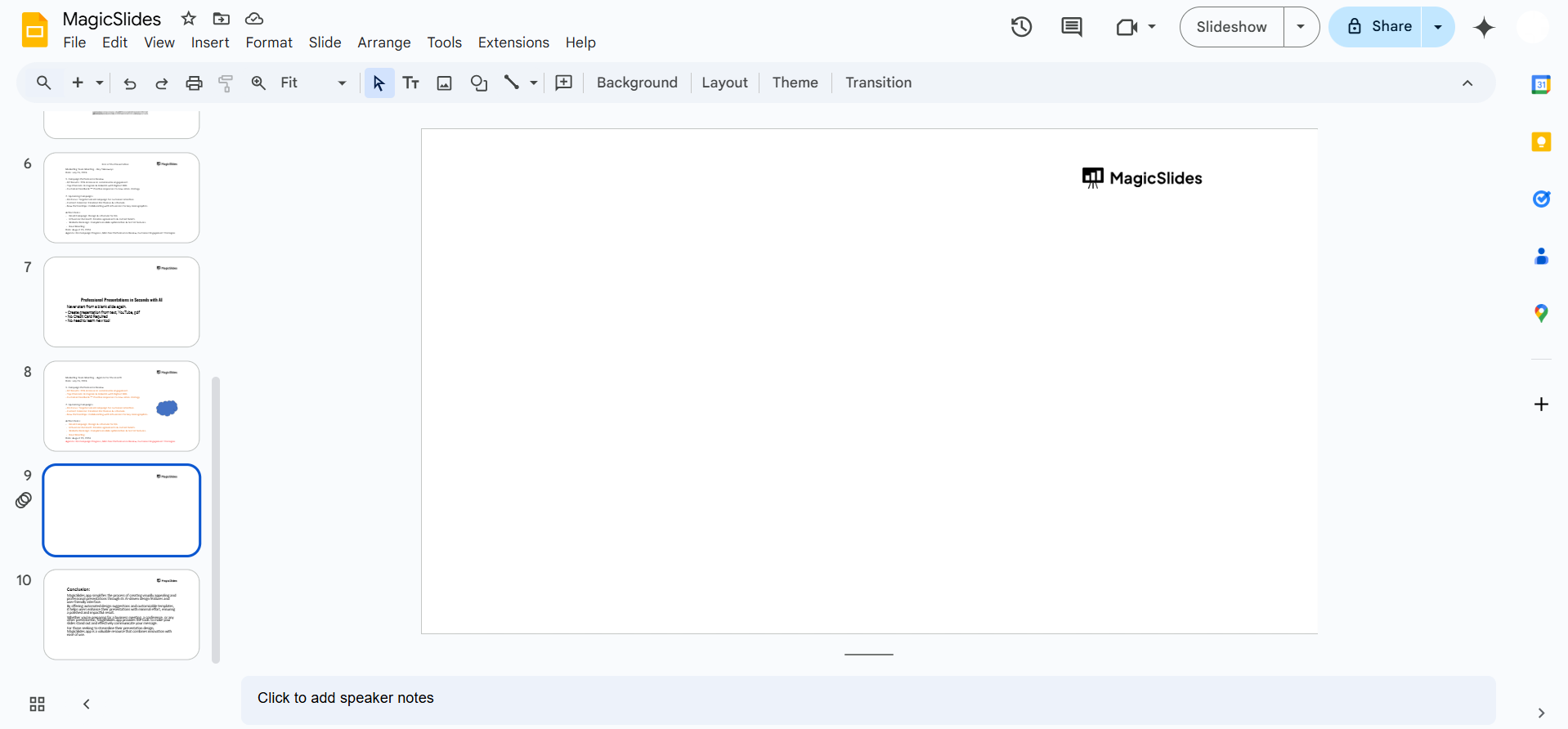Log in to Google Slides and open a blank presentation.