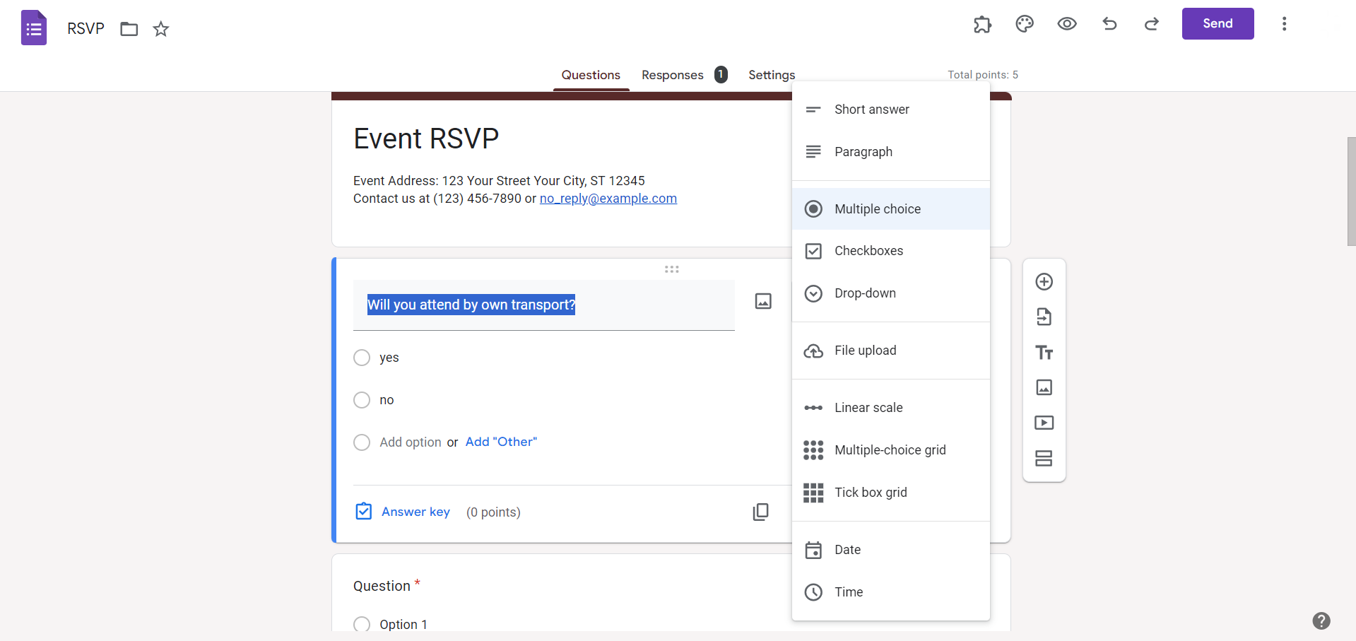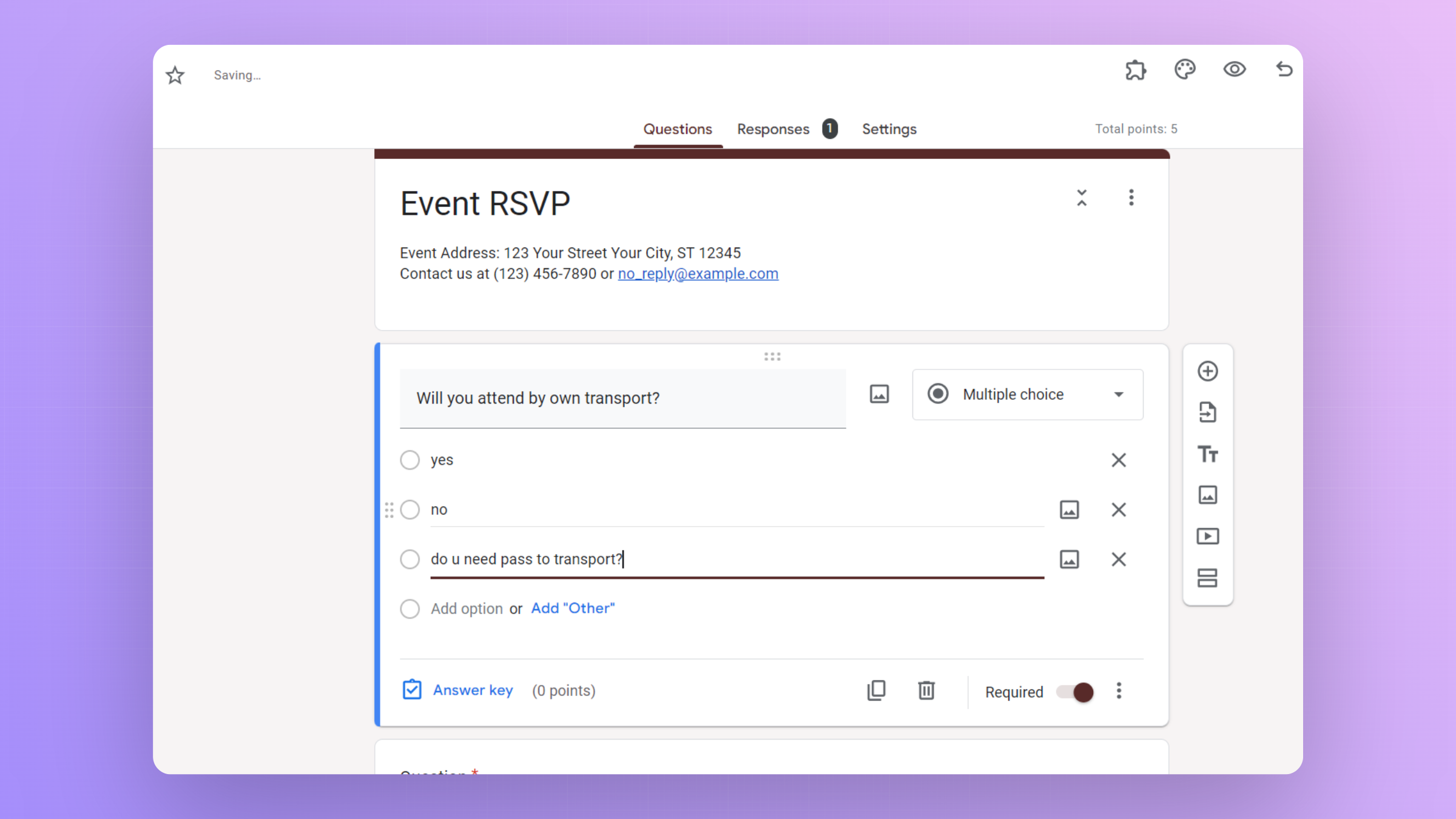 Within your form, click on the "+" icon to add a new question. Choose the type of question as "Multiple Choice."
