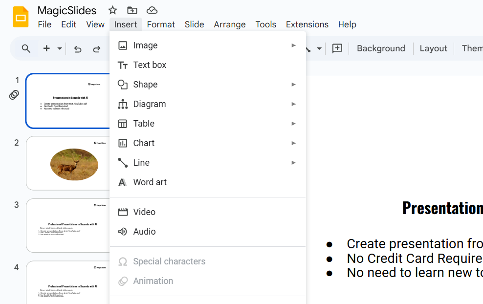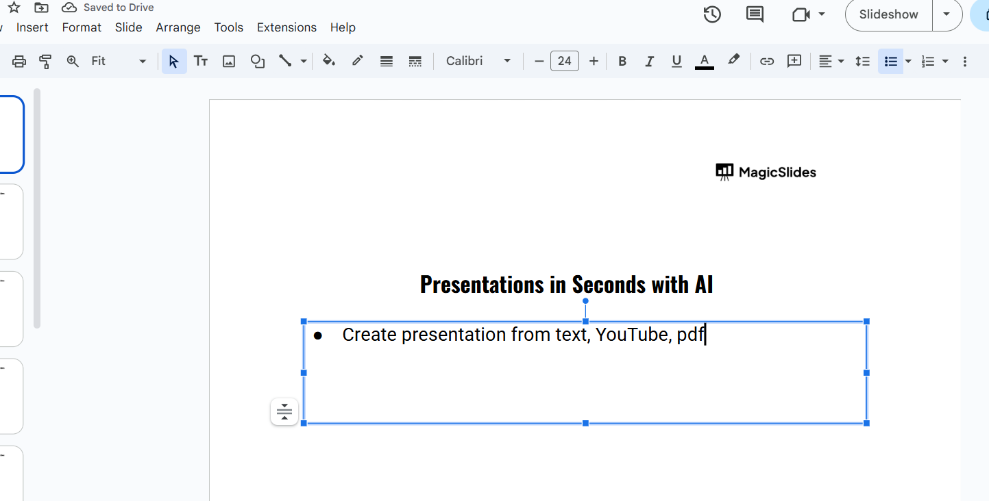 Log in to your Google account and access your presentation. Select the slide where you want to add bullet points.