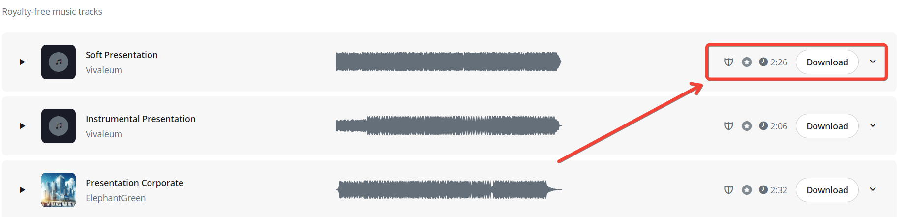 After selecting the music, look for the download button, usually labeled "Download," "Free Download," or something similar.