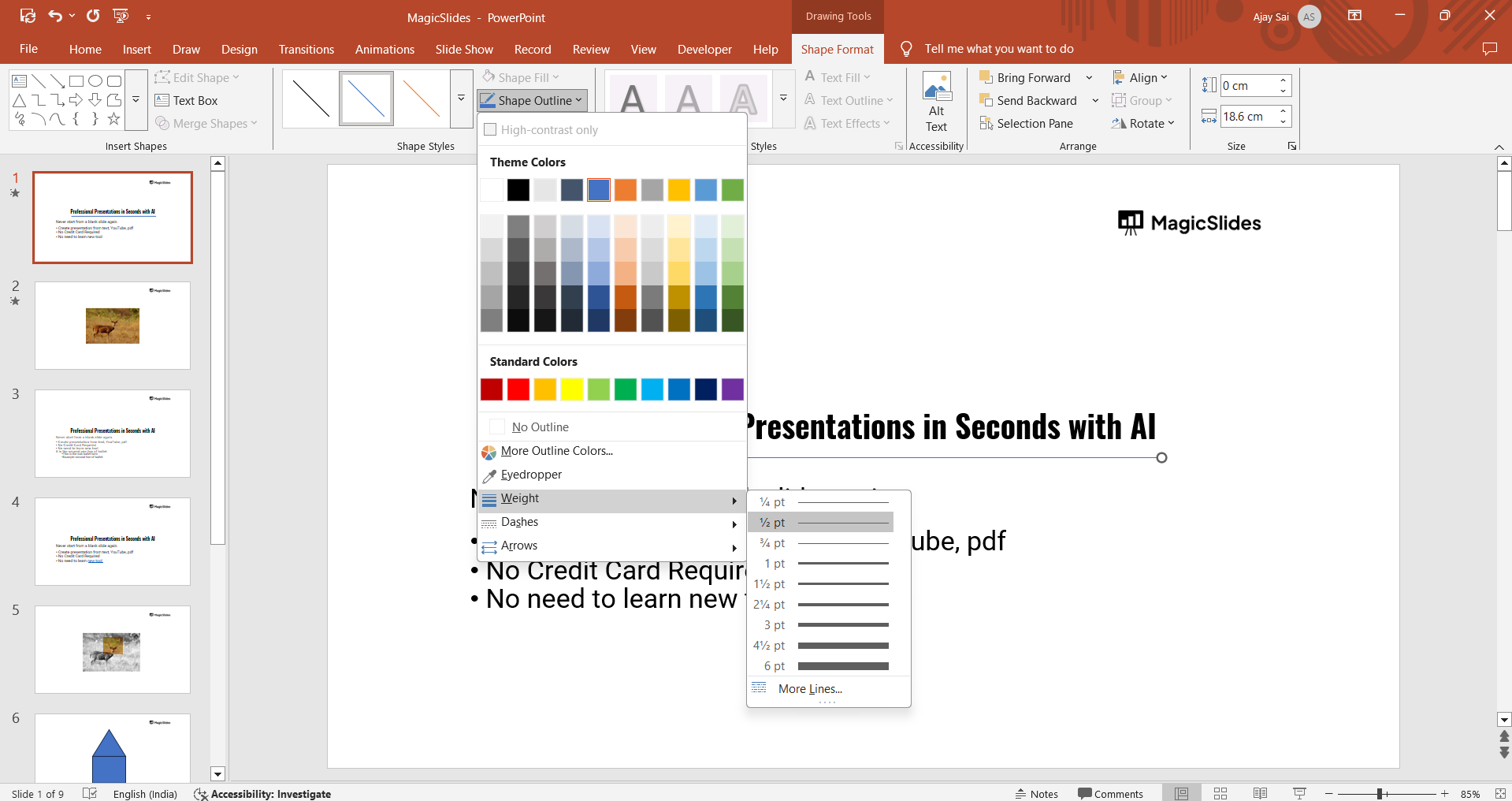 Adding borders to lines in PowerPoint enhances your slide design, but if you want to create stunning presentations effortlessly, try MagicSlides.app. With AI-powered slide generation, you can focus on content while MagicSlides handles the design!"