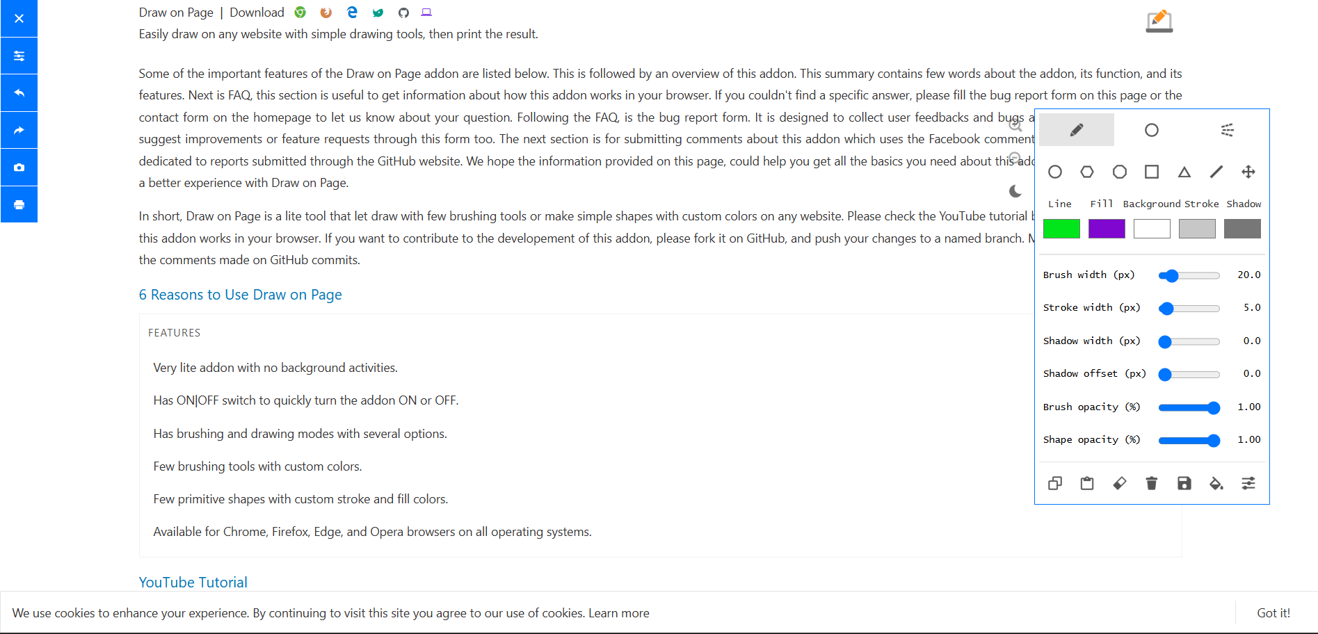 Click on the extension icon in the Chrome toolbar. Select the pen tool and adjust the color or thickness.