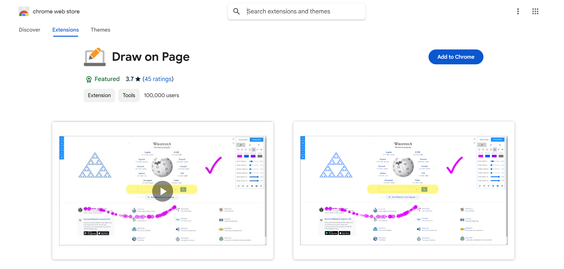 Open the Google Chrome Web Store. Search for extensions like Web Paint or Annotate.