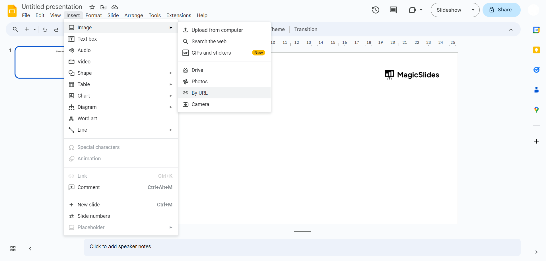 - Access the "Insert" menu, choose "Image," and then opt for "By URL."