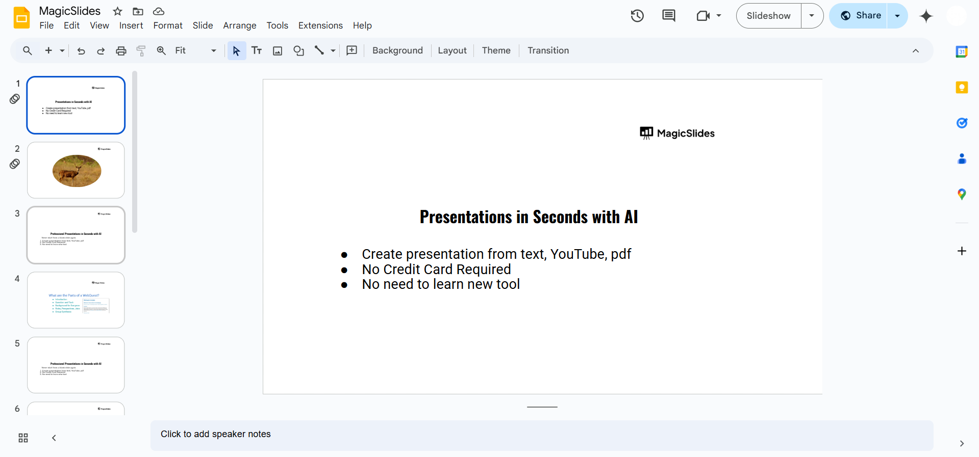 Embedding videos from Streamable into Google Slides can enhance your presentations, but why stop there? With MagicSlides.app, you can generate AI-powered slides instantly, integrating videos, images, and more with ease!